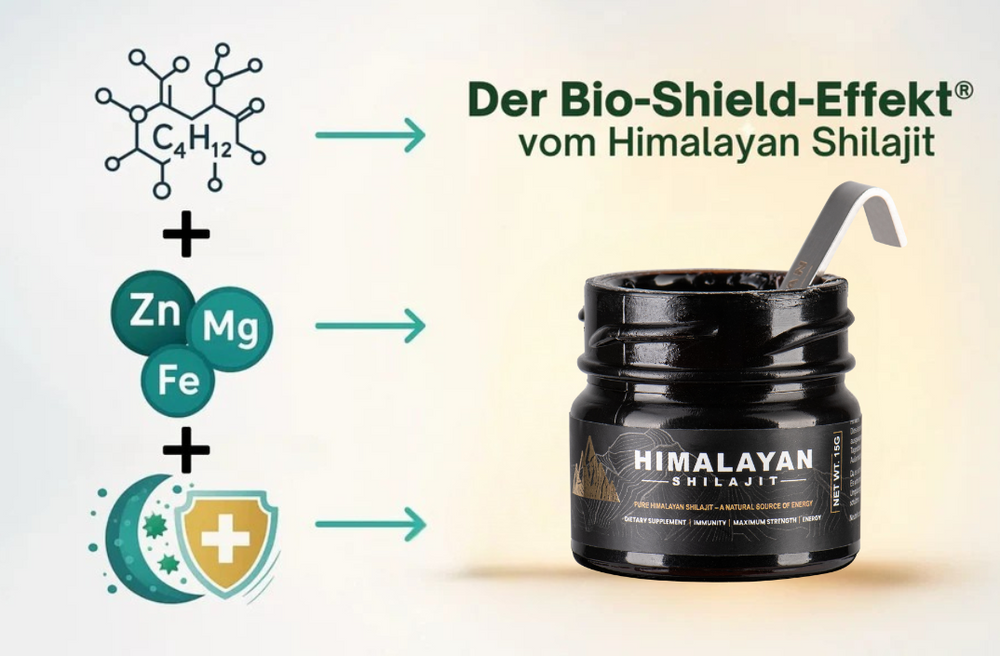Der Bio-Shield-Effekt® vom Himalayan Shilajit beruht auf seiner einzigartigen Kombination aus Fulvinsäure, Mineralien und Spurenelementen, die den Körper auf zellulärer Ebene schützen und regenerieren.